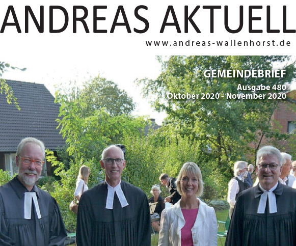 Die neue Ausgabe von Andreas Aktuell für die Monate Oktober und November ist erschienen – mit Berichten über die Einführung von Pastor Martin Steinke am 13. September und die neue Website der Andreasgemeinde sowie einem Spendenaufruf für unseren Partnerkirchenkreis in Südafrika.