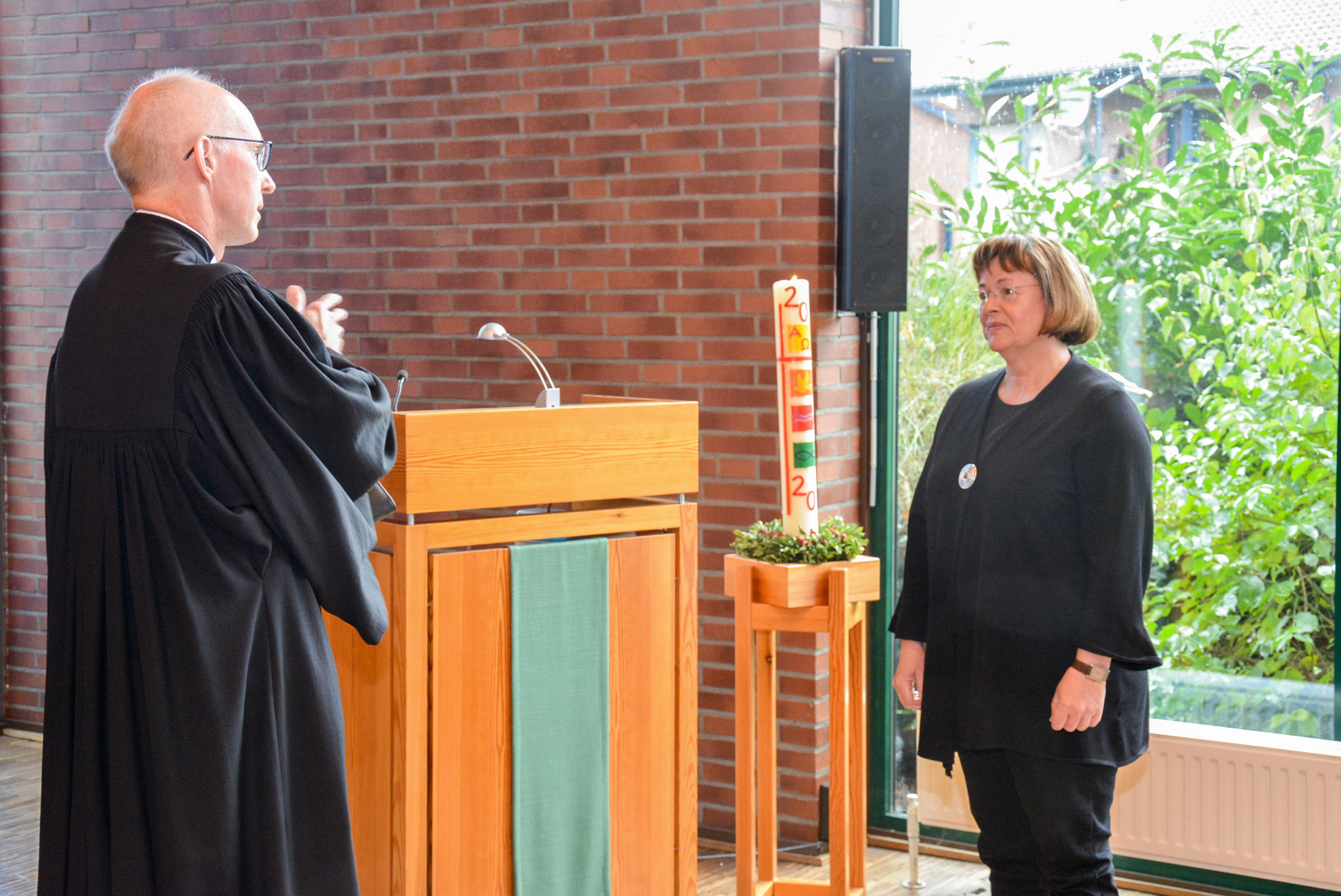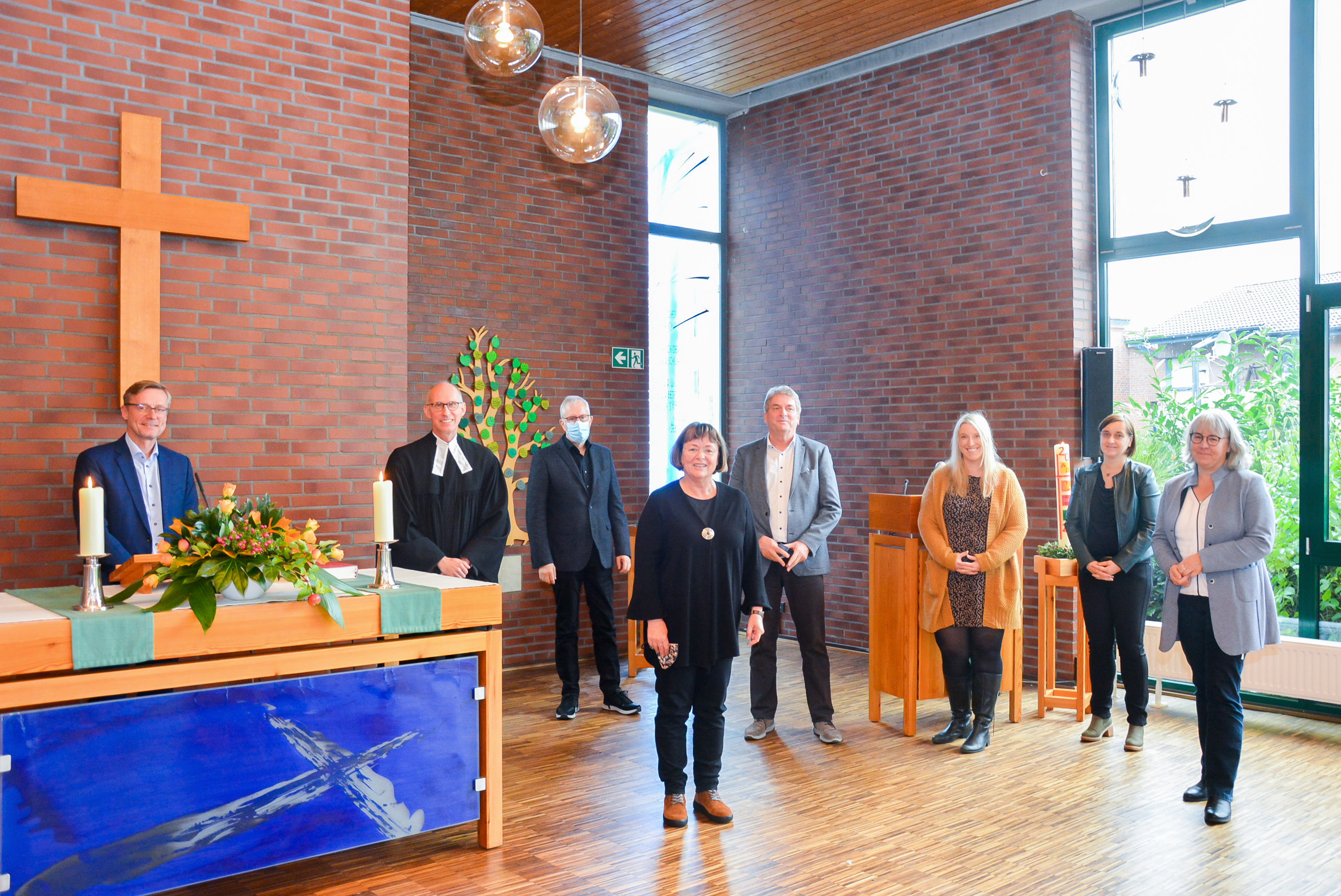 Am Sonntag haben wir in einem festlichen Gottesdienst unsere KiTa-Leiterin Britta Finke verabschiedet. 26 Jahre lang hat sie die KiTa geleitet und die Verbindung zur Andreasgemeinde mit Leben gefüllt. Das war im Abschieds-Gottesdienst deutlich zu spüren. Britta Finke hat sich über die vielen Menschen gefreut, die es sich trotz der widrigen Umstände nicht nehmen lassen haben, den Gottesdienst mitzufeiern. Viele Gemeindeglieder der ersten Stund waren ebenso gekommen wie Weggenossinnen aus anderen KiTas. Natürlich waren auch Familienangehörige von Britta Finke da und manch offizielle Gäste, z.B. Bürgermeister Otto Steinkamp. Sein Grußwort im Anschluss an den Gottesdienst war alles andere als offiziell. Sehr persönlich und wohlvertraut mit dem sich stets verändernden KiTa-Alltag sprach er Britta Finke seinen Dank aus. Dass mit Burkhard Klemenz und Hannes Meyer-ten Thoren gleich zwei ehemalige Pastoren der Andreasgemeinde gekommen waren, zeigt eindrücklich, wie vertrauensvoll, verbindlich und wertschätzend das Miteinander war.