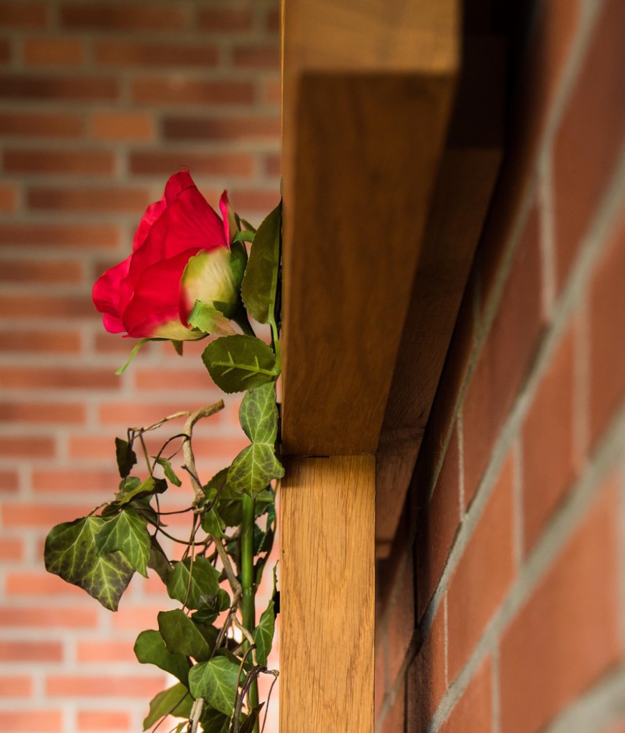 Als ich dieser Tage zum Unterschreiben von Dokumenten im Gemeindebüro war, habe ich auch in die Kirche geschaut. Ich bin vor dem Kreuz stehengeblieben und habe auf die Rose geschaut. Ein stilles Bild. Tröstend und stark! Liebe, die über den Tod hinausgeht. Jesus, der sein Kreuz trägt. Jesus, der mein Kreuz trägt. Er versteht mich, ohne dass ich große Worte mache. Er sieht mich, wenn ich hinter meiner Maske weine. Er ist da! Ganz nah bei mir. Er ist ja auferstanden. Und dann fang ich an zu lächeln hinter meiner Maske. Man sieht es in meinen Augen. Und ich freue mich, weil da einer ist, der mitträgt, der mich kennt und behütet.