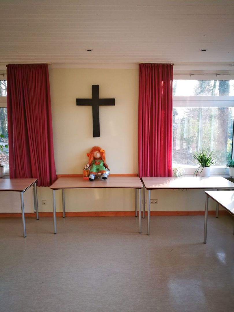 Ein wenig verlassen sitzt sie hier, unsere Andrea, ein wenig ratlos, im leeren Raum 6 unseres Gemeindehauses, direkt unter dem großen schwarzen Kreuz.