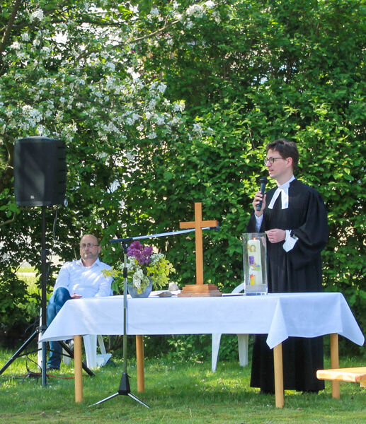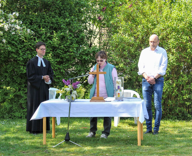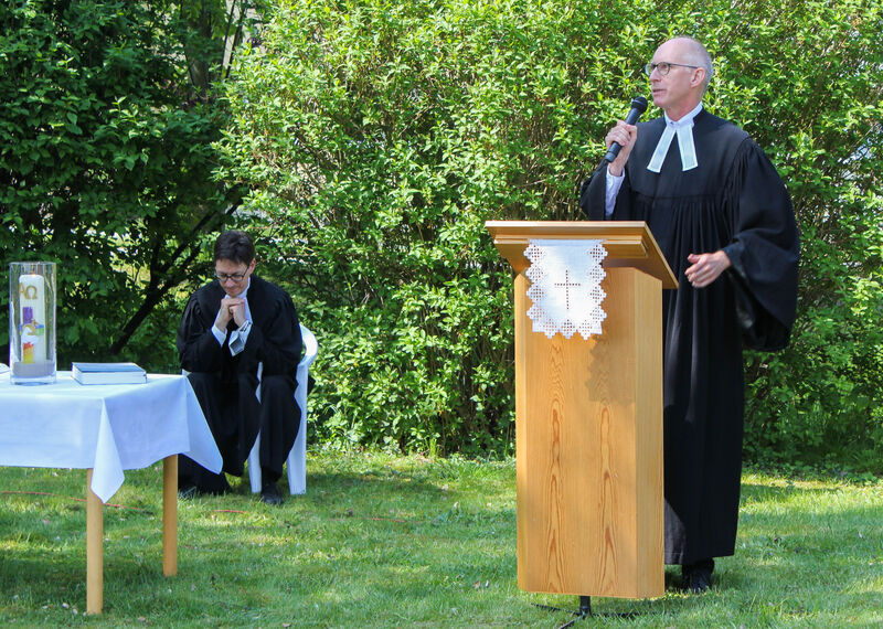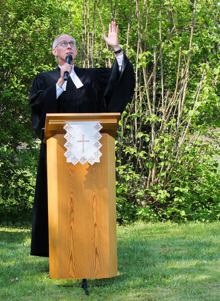 Bei herrlichem Sonnenschein hieß Pastor Dr. Lüder Meyer-Stiens die Besucher*innen aus der Paul-Gerhardt- und der Andreasgemeinde sowie Gäste im Garten der Arche in Lechtingen herzlich willkommen. Pastor Martin Steinke predigte über einen Abschnitt aus dem 1. Kapitel des Epheserbriefes: „Gott gebe euch erleuchtete Augen des Herzens, damit ihr erkennt, zu welcher Hoffnung ihr von ihm berufen seid." Wie wichtig es ist, Hoffnung zu haben und sich nicht verlassen zu fühlen, wird uns gerade in diesen Zeiten der Pandemie sehr deutlich. Mit unseren natürlichen Augen können wir oft nicht erkennen, was Gott tut und uns schenkt. Dazu braucht es die Augen des Herzens.