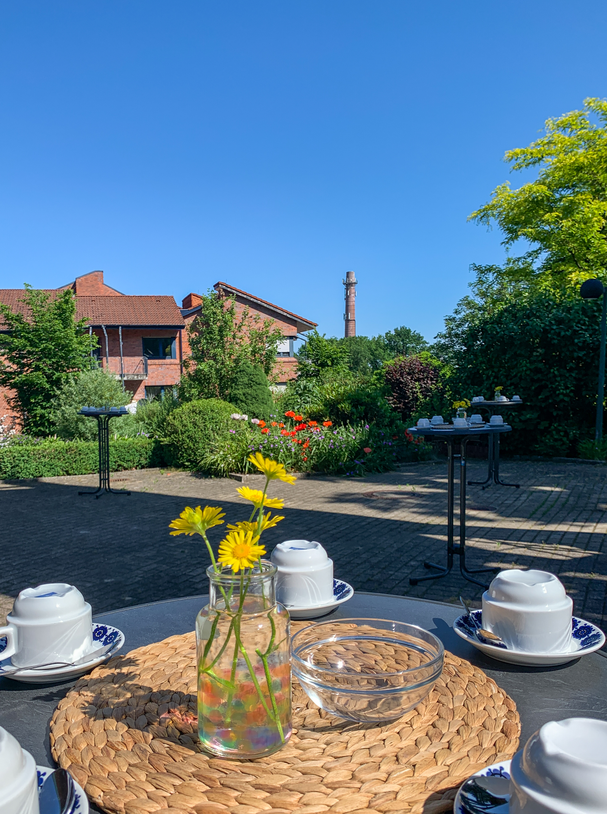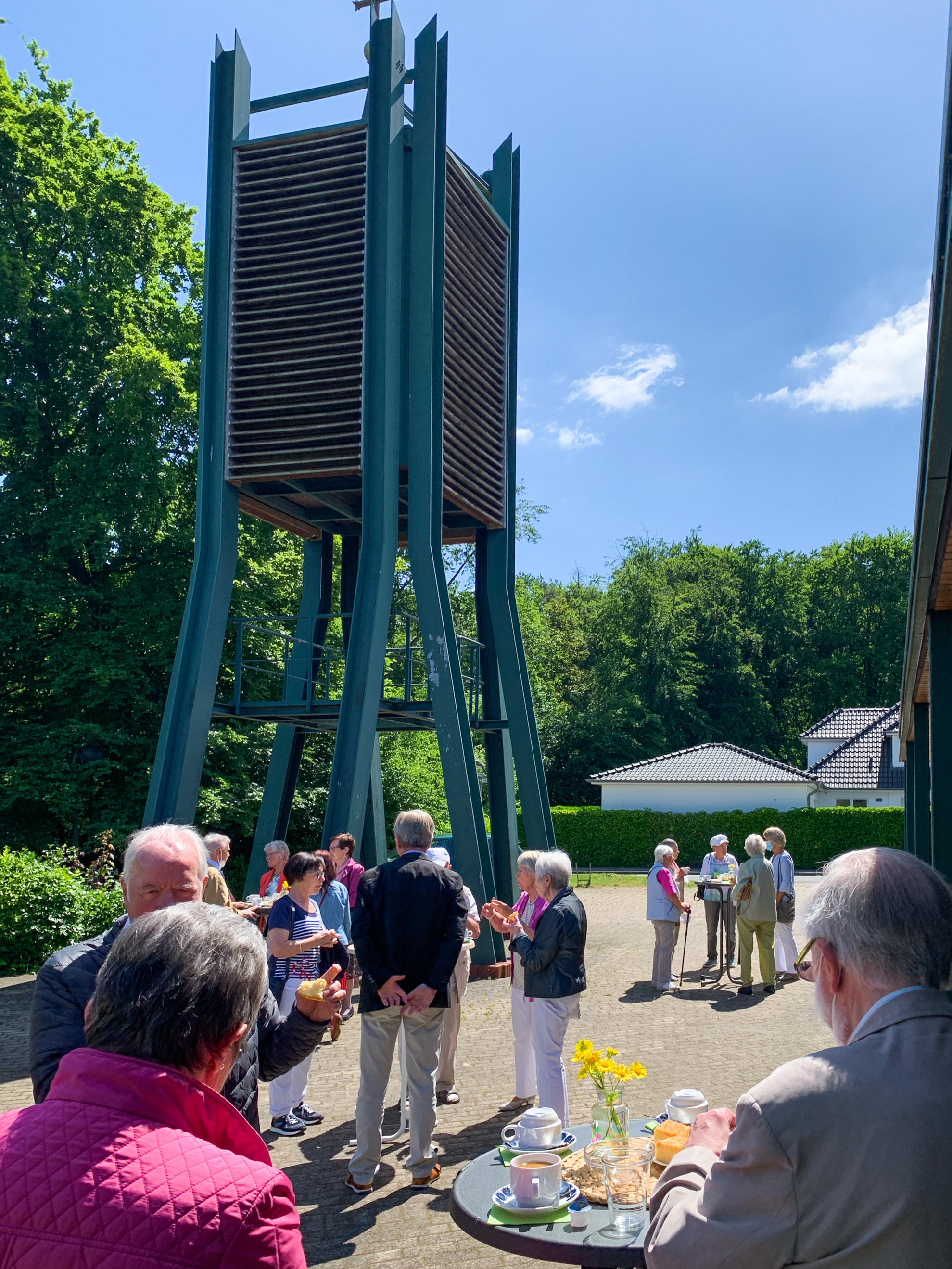 Schon beim Ankommen begrüßten uns von Ellen Langemeyer wunderschön dekorierte Bistrotische vor der Kirche, die Hoffnung weckten: „Endlich wieder Kirchencafé!“ Die Hoffnung sollte sich erfüllen: Kirchencafé in fröhlicher, sonniger Stimmung sogar mit selbstgebackenem Kuchen! Und zuvor ein Gottesdienst voller Gesang! 44 Lieder haben wir gesungen. Im Ernst! Wenn Sie mögen, erzähle ich Ihnen gerne, wie das ging, wenn wir uns das nächste Mal treffen. Und Abendmahl haben wir gefeiert! Mit unseren schönen neuen Einzelkelchen. Viele Mitfeiernde waren zu Tränen gerührt, so sehr hatten sie das Singen und das Abendmahl vermisst. Ich glaube, wir haben eine gute Form gefunden, Corona-angemessen und würdig Abendmahl zu feiern. Auch davon gerne später einmal mehr.