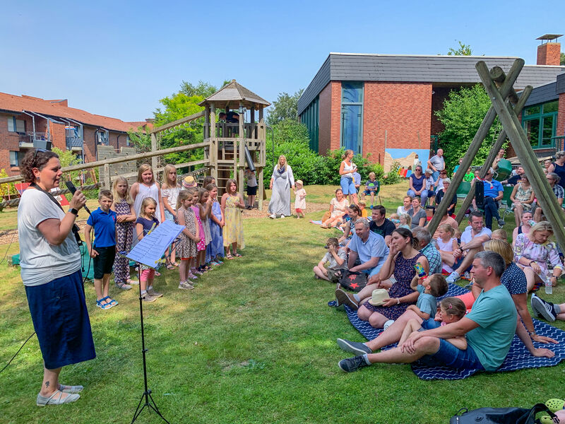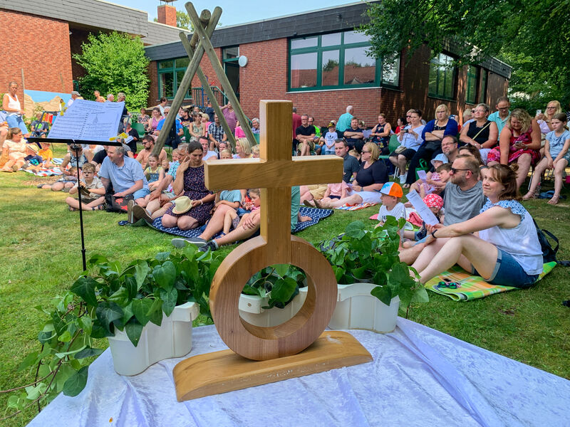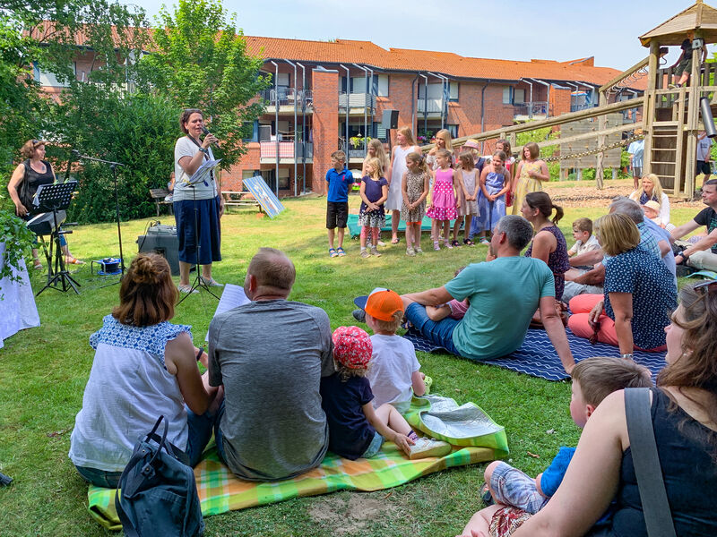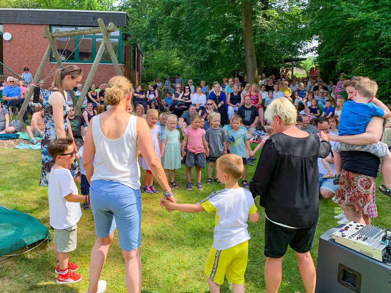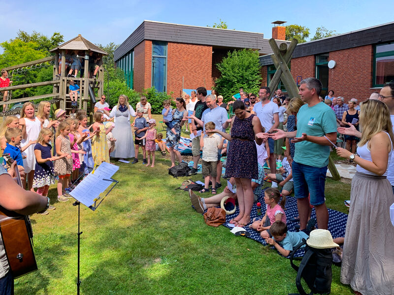Den bis dahin heißesten Tag des Jahres hatten wir getroffen, und ich war gespannt, wie viele Menschen bei diesen Temperaturen wohl kommen würden. Der Platz im Schatten unter den hohen Bäumen im Garten, wo wir den Gottesdienst zu Beginn des Festes feierten, reichte kaum aus, so viele kamen. Die Kinder aus der KiTa hatten den Gottesdienst vorbereitet, und unser neuer Kinderchor sang zum ersten Mal. Und dann wurde gefeiert, geredet, gespielt, gegessen und getrunken, und mit unserem neuen Kirchenchor noch viel mehr gesungen. Und abends haben wir getanzt. Ein wunderschönes Fest mit vielen Begegnungen - es war mit Händen zu greifen, wie sehr das viele vermisst hatten.