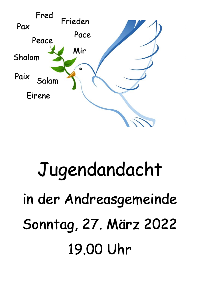Jugendandacht in der Andreaskirche am Sonntag, 27. März 2022, um 19 Uhr