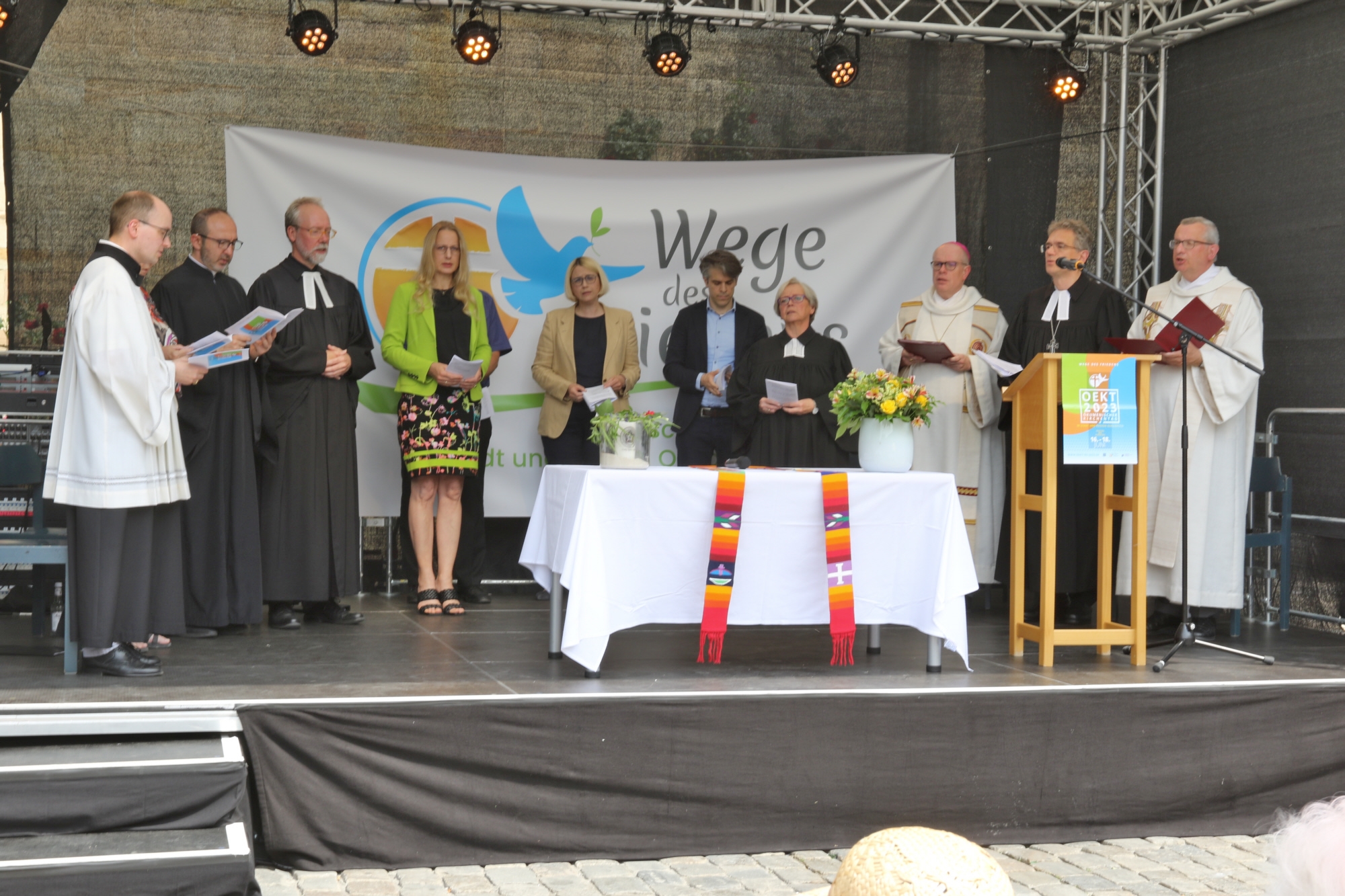 375 Jahre nach dem Schluss des Westfälischen Friedens haben die christlichen Kirchen in Stadt und Region Osnabrück einen Ökumenischen Kirchentag (OEKT) veranstaltet und viele Menschen sind der Einladung gefolgt. Als Kirchentag „von unten“ hatte der für den Kirchentag gegründete Verein die vielfältigen Angebote organisiert, die sich an zehn Themenorten in der Osnabrücker Innenstadt und weiteren Standorten mit dem Leitwort „Wege des Friedens“ auseinandergesetzt haben.