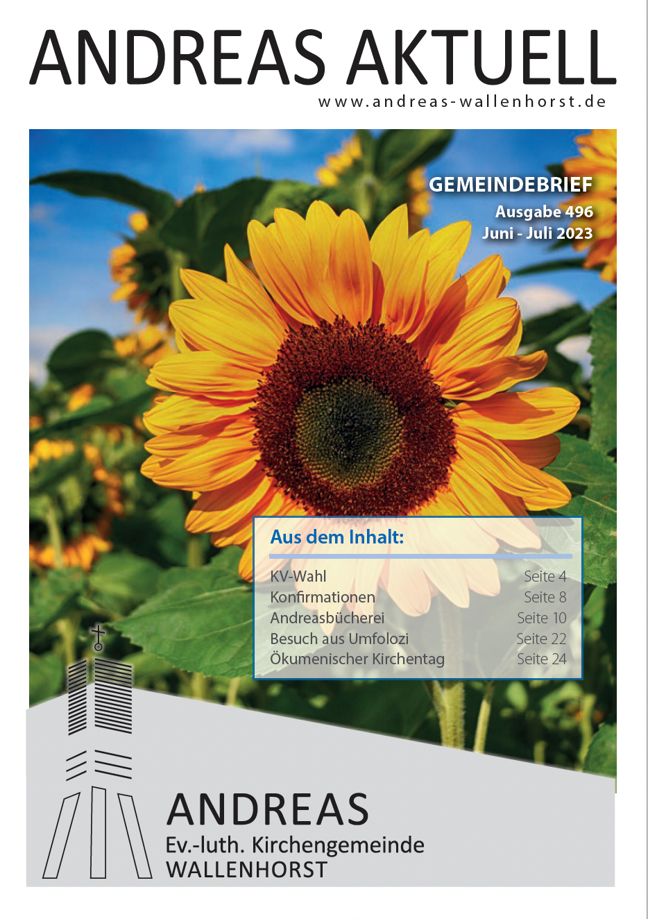 Im Gemeindebrief für Juni und Juli 2023 geht es erneut um die Kirchenvorstandswahlen im März 2024. Unser Regionalbischof Friedrich Selter hat unter dem Titel "Gesichter in den Gemeinden" die Arbeit von Kirchenvorsteherinnen und Kirchenvorstehern gewürdigt. Er schreibt: "In guter Gemeinschaft können Kirchenvorstände gerade heute, wo in unserer Kirche undGesellschaft vieles im Wandel ist, auch viel gestalten und bewirken." Er lädt dazu ein, sich für dieses spannende und herausfordernde Amt zur Verfügung zu stellen.