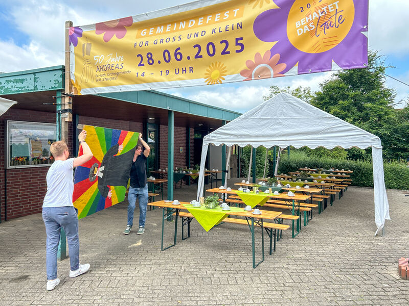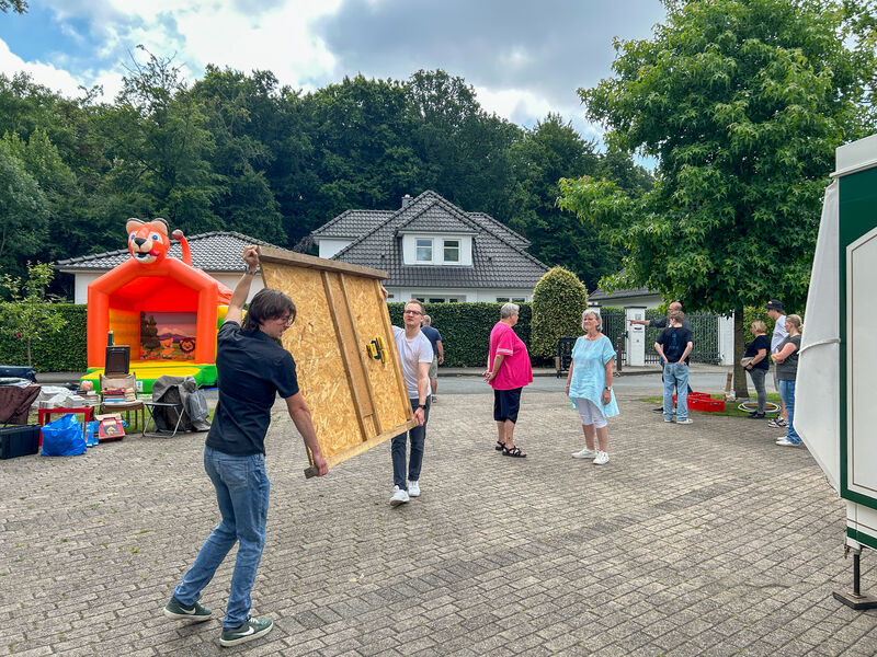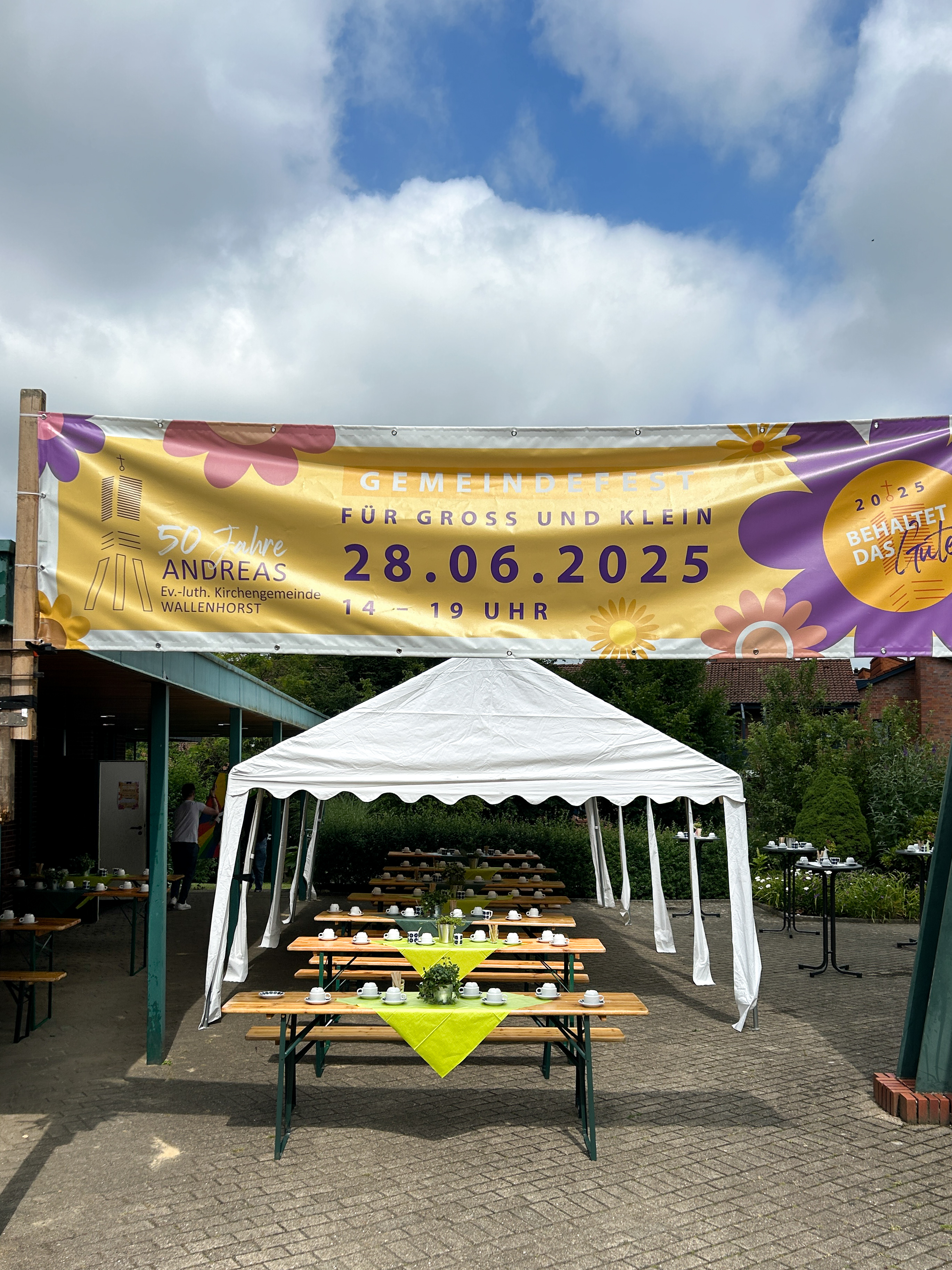 Währenddessen sorgten die Jugend und die Vor-Konfirmand*innen der Andreasgemeinde für ein buntes Kinderprogramm und kümmerten sich um den Getränkewagen. Besonders beliebt waren das Dosenwerfen, das Torwandschießen und natürlich das Schwammwerfen. Auch die Hüpfburg war durchgehend gut besucht und ein echtes Highlight für die jüngsten Gäste.