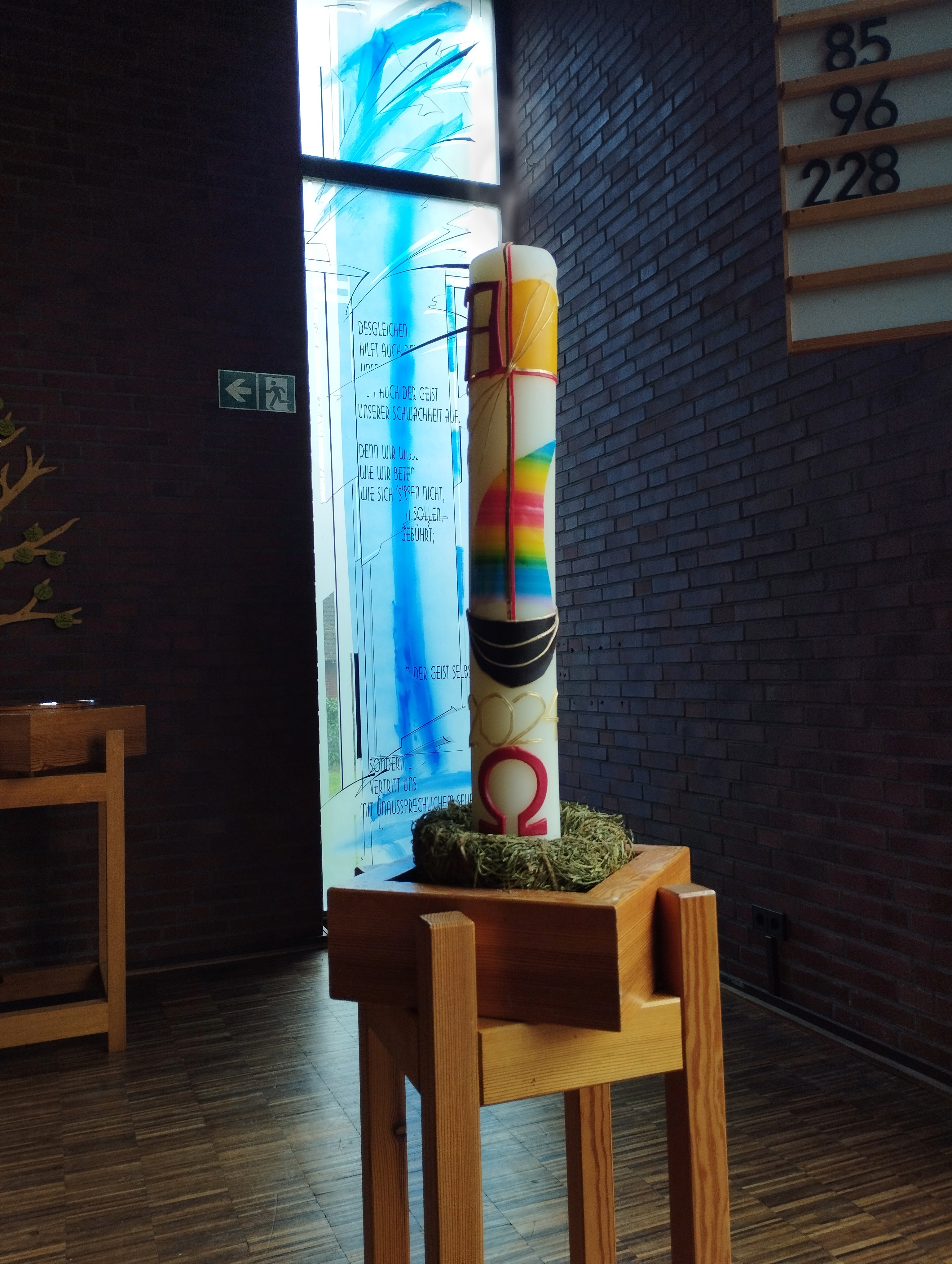 Der Andreaschor, unter Leitung von Insa Zimni, nahm gegenüber der Tafel Platz und begleitete das Abendmahl musikalisch – mit Liedern, die sich über den Abend verteilten und immer wieder Momente der Besinnung schufen. Viele Gemeindemitglieder waren gekommen, um diese besondere Form des Feierabendmahls gemeinsam zu begehen. Diakon Udo Ferle leitete durch die Liturgie. Wir hörten ausgewählte Psalmen aus der jüdischen Passah-Liturgie, die durch Lesungen zur Passion Jesu ergänzt wurden.