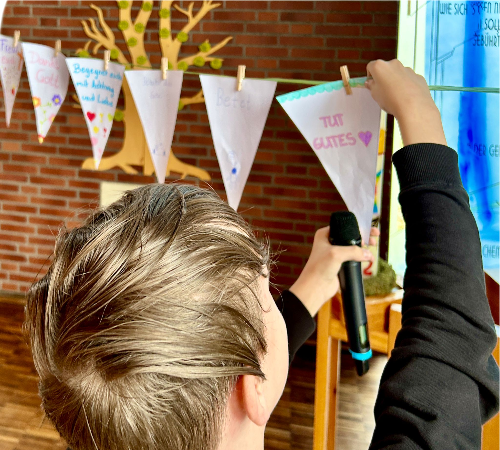 Nach einer freundlichen und herzlichen Begrüßung durch die Hauptkonfirmand*innen stimmten wir gemeinsam in das erste Lied ein: Danke für diesen guten Morgen.