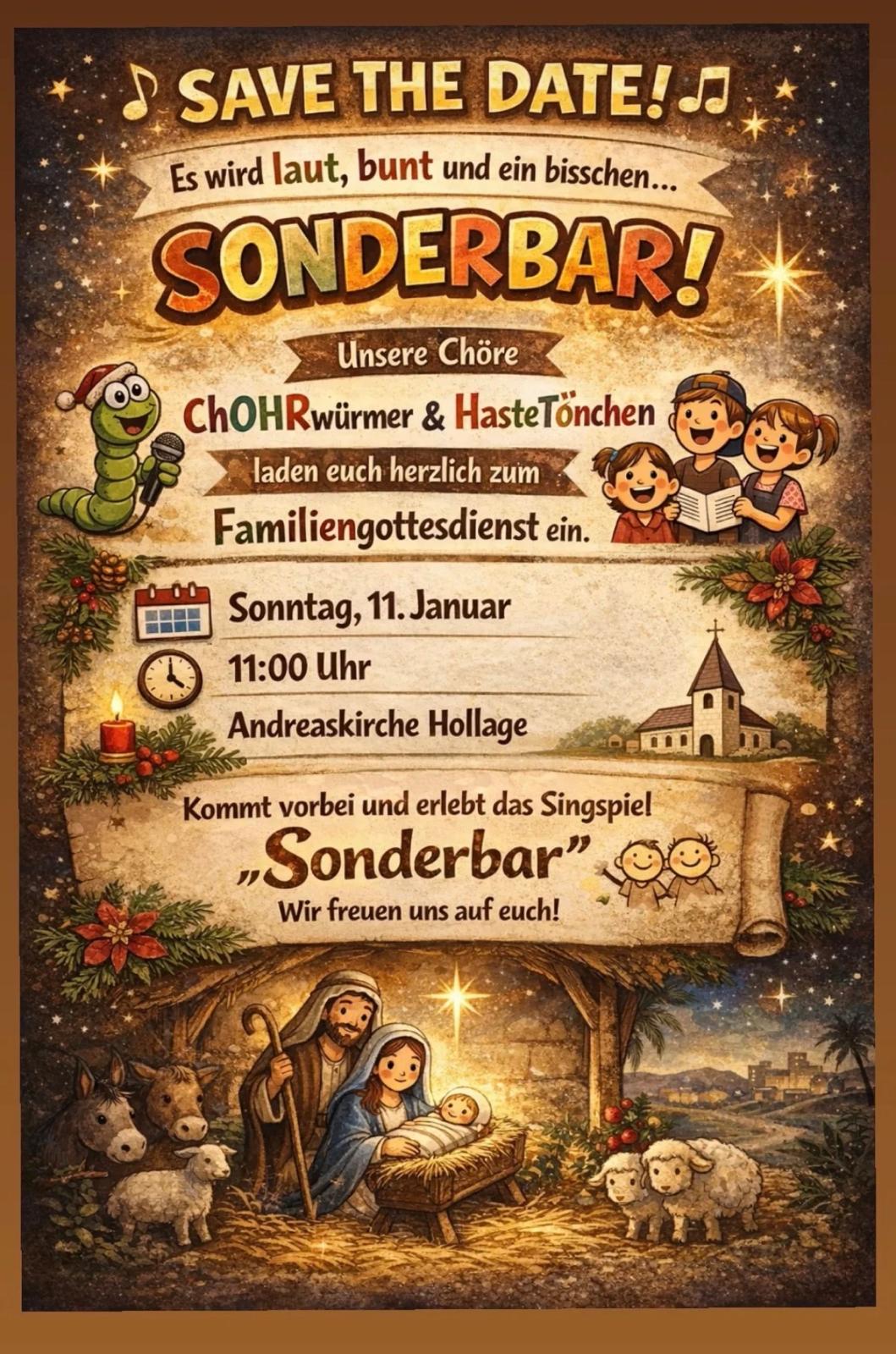 Am Sonntag, 11. Januar 2026, um 11.00 Uhr laden wir alle Familien herzlich in die Andreaskirche ein zu einem ganz besonderen Gottesdienst – meinem Abschiedsprojekt als Diakonin.